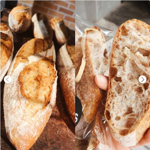 店里多种法棍,传统、短棍、老面,大概在20左右,长度和割口加上色泽都在同等水平中的法棍属于佼佼者!性价比超高,能切片和切段。我尤其喜欢老面内部的气孔和独有的香气。