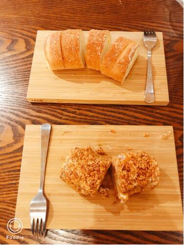 这个是看到门口的外国夫妇吃的,拿着店里的木头案板坐在门口的椅子上一边聊天一边撕着吃,大概这其中的风味也是超棒的吧。
