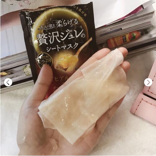 3. 感觉面膜纸有些干时,就把袋子里的精华全部挤在脸上,再敷个15分钟。