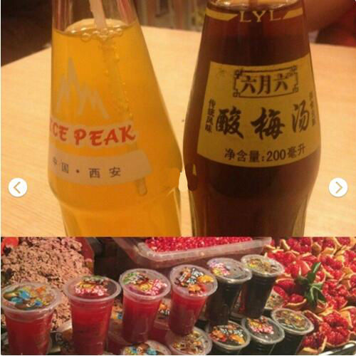 酸梅汤在餐馆里点的也很多,回民街上也有,到处都买得到。