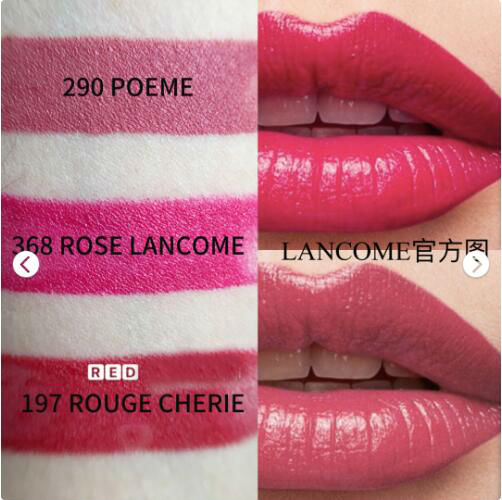 ?368 ROSE LANCOME 兰蔻玫瑰顾名思义兰蔻的代表色,必败款,新蔻粉买这款准没错。纯正法式玫瑰粉,玫红偏粉红一些。