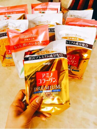 人到中年,各方面的指标都在下滑,不是最好的状态了。这时补充一些必要的营养就显得尤为重要了。笔者就已经30多岁了,常常感觉力不从心,不坚持锻炼和加强营养情况就会更差。但问题又来了,这个年龄段该补充什么营养好呢?通过查阅资料,实地考察研究和了解,我找到了一款日本的胶原蛋白分,据说很不错,可以改善气色和肤质等等。日本的胶原蛋白种类繁多,资生堂的、pola的、fancl的等等,让人眼花缭乱,经过性价比功效等方面的比较筛选,还是觉得明治胶原蛋白分好些。我本身就是干燥的肤质,肤色很暗,没有光泽。反复揣摩,决心还是用下试试效果,万一有惊喜呢。我就拖朋友从日本买回了一些明治胶原蛋白分。粉色的价格一千多日元,金色三千多日元,区别就是金色加了抗衰成分,效果更显著。这款蛋白分在日本非常畅销,药妆店,超市都有卖,而且常常断货。一开始我还是有点犹豫,这个是否会有副作用等等,了解到这些情况后顾虑就消除了。
