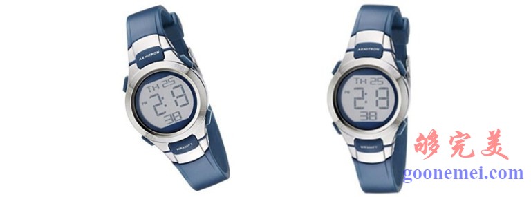 该Armitron体育女子 45 / 7012NVSV数字手表是一个很好的,具有扩展的潜水范围功能腕表。虽然我认为它不像Timex马拉松那样坚韧或耐用,但它可以防水至330英尺,适合游泳和浮潜,但不适合潜水。它具有闹铃,计时码表,日期,功能和LCD点亮屏幕。