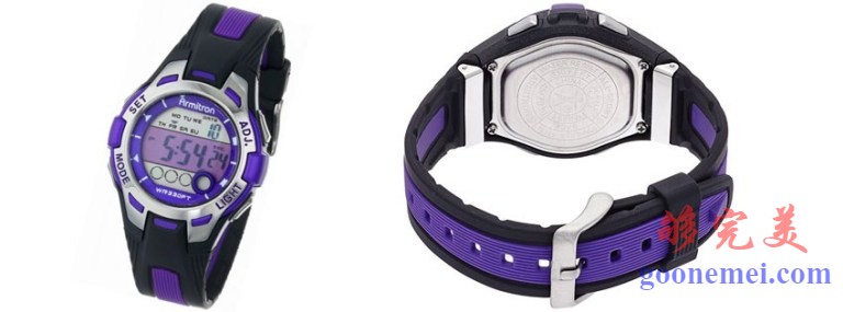 这款轻巧耐用的手表具有多种基本功能。可以在两个不同的时区之间设置其数字显示,并且可以在标准时间之间切换显示。它还具有倒数计时器,圈速记录器,计时码表和闹铃。该Armitron体育女子456984PNK计时数字手表是防水型可达50米(165英尺),使其可行游泳,但不浮潜或潜水。这款运动表仅重1.6盎司。