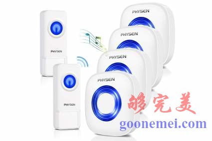 Physen Model CW防水无线门铃套件拥有同类产品中的佼佼者,因为它配备了两个发射器和四个接收器,而竞争产品通常仅包装成一个和两个。发射机可以用作室内的寻呼机,当然也可以用作门铃。IP44防水,由电池供电,因此使用随附的胶带即可轻松安装。