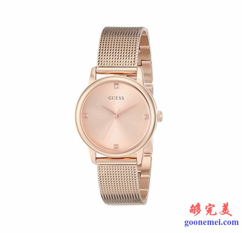 15. GUESS女士玫瑰金色调网状手表带钻石标记