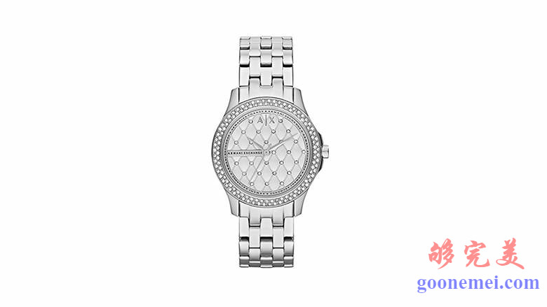 这款缝优雅的可爱小东西有适量的火花。Armani Exchange用这款白金色调的女士手表钉牢了它,与普通手表的摆姿势截然不同。其大胆的表盘表面饰有水晶,可吸引许多仰慕者的目光。